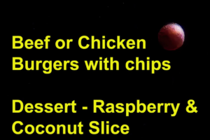 Dinner: Beef or Chicken Burgers with chips $15.00